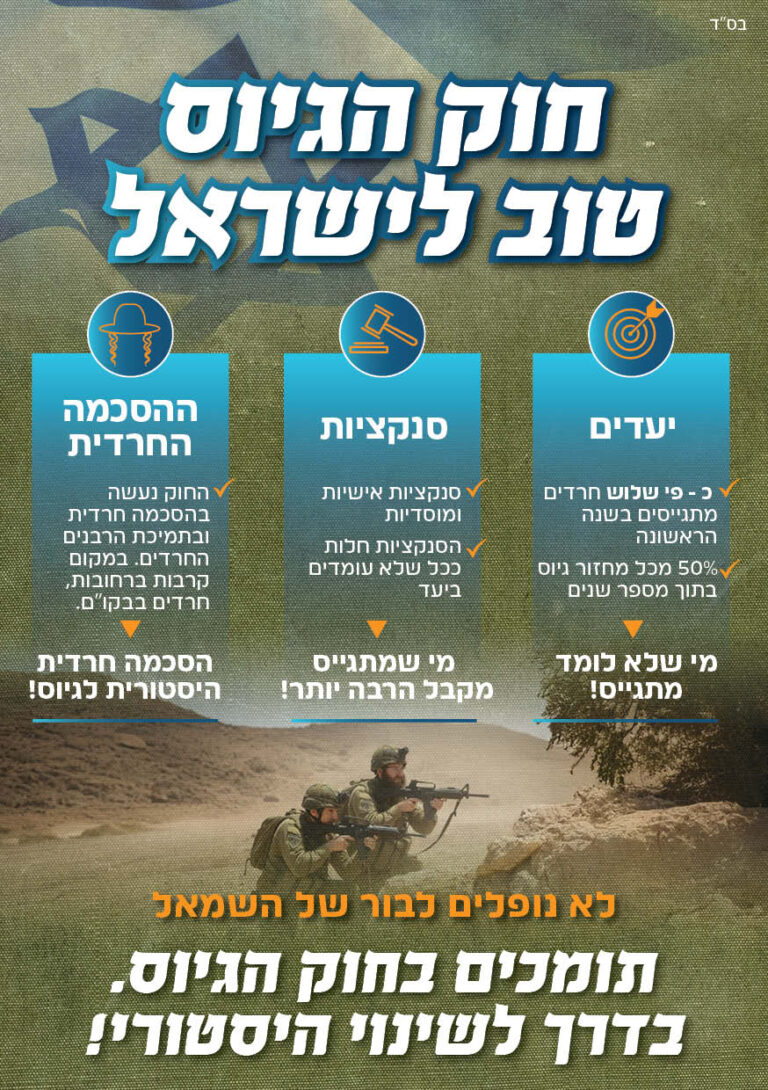 ההסכמה החרדית לחוק היא הזדמנות היסטורית שאסור להחמיץ!